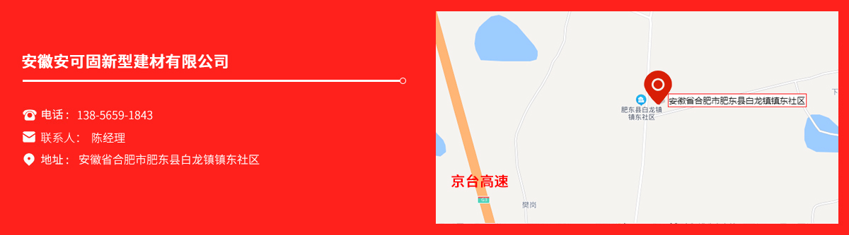 安徽安可固新型建材有限公司是一家集科研、生產(chǎn)、銷售與技術(shù)咨詢?yōu)橐惑w的特種建材企業(yè)。公司主營產(chǎn)品:高強無收縮灌漿料,灌漿料,支座灌漿料,新橋規(guī)預(yù)應(yīng)力孔道壓漿料,道釘錨固劑,鋼結(jié)構(gòu)膠,水泥路面修補料,環(huán)氧樹脂膠泥,環(huán)氧灌漿料,瓷磚粘結(jié)劑,防水涂料、堵漏,混凝土添加劑及砂漿母料等產(chǎn)品。 安徽安可固新型建材有限公司產(chǎn)品廣泛應(yīng)用于鐵路、電力、化工、結(jié)構(gòu)加固、道路搶修、水庫堤壩、工業(yè)耐磨地坪、防腐阻銹等領(lǐng)域。...